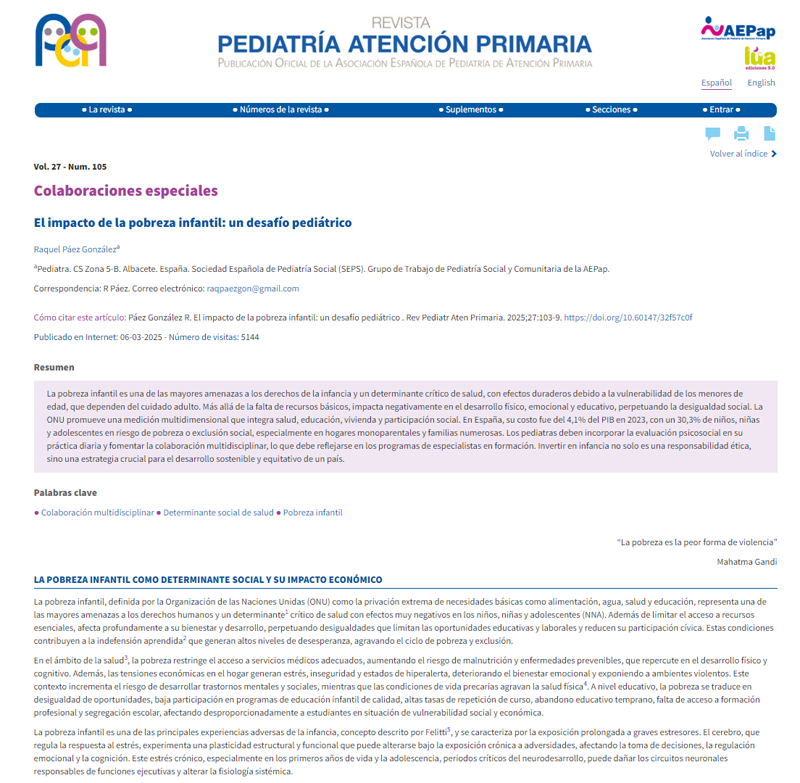 Páez González R. El impacto de la pobreza infantil: un desafío pediátrico . En Artículos destacados. Continuum 2025. [en línea] [consultado el 14.12.2025]. Disponible en http://continuum.aeped.es