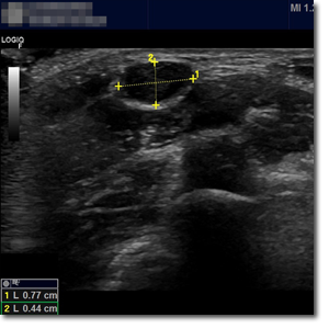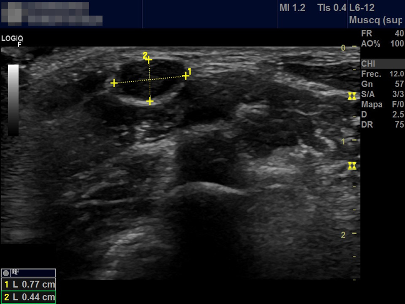 Niño de 7 años que acude a consulta de Atención Primaria por aparición de tumoración cervical de 2 días de evolución. A la exploración en la región lateral cervical posterior al esternocleidomastoideo se aprecia una tumoración móvil no adherida de consistencia blanda de aproximadamente 1 cm de diámetro sin cambios superficiales acompañantes.