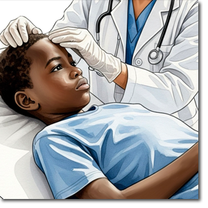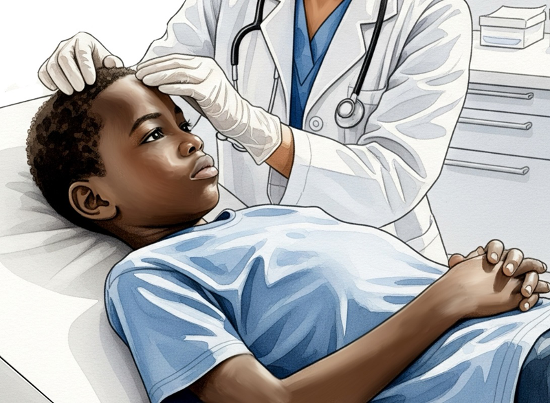 Paciente de 12 años procedente de República de Malí, residente en España desde hace 6 meses, que consulta por lesión supurativa en el cuero cabelludo, hematuria y dolor con la micción.