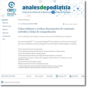Aparicio Rodrigo M, González Rodríguez P, Balado Insunza N, Fraile Astorga G, Aizpurua Galdeano P, Ochoa Sangrador C; Comité de Trabajo de Pediatría Basada en la Evidencia. Cómo elaborar y evaluar documentos de consenso: métodos y listas de comprobación. An Pediatr (Barc). 2025;103(1):41-50.