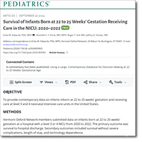 Edwards EM, Ehret DEY, Soll RF, Horbar JD. Survival of Infants Born at 22 to 25 Weeks’ Gestation...
