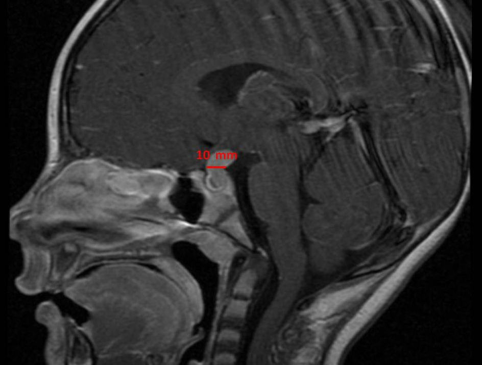 Una vez hecho el diagnóstico de diabetes insípida central, se realiza una resonancia magnética en la que se objetiva un engrosamiento del tallo hipofisario de 10 mm.