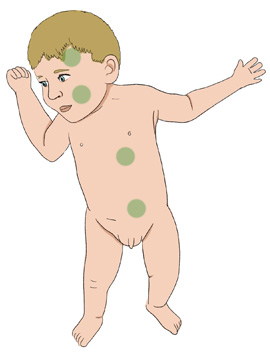 Peso de 6,7 kg (P6), talla de 66 cm (P10), perímetro craneal de 42,5 cm (P5). Buen estado general. Buena coloración de piel y mucosas. Adecuada nutrición, leve microsomía. Mancha café con leche de 2 cm en antebrazo izquierdo. Cráneo normoconfigurado. No presenta dismorfias significativas. Leve micrognatia. Cuello y tórax normal. Almohadillado palmo-plantar normal. Neurológico, sintoniza con sonrisa social. No sedestación. Adopta cifosis dorsal baja.