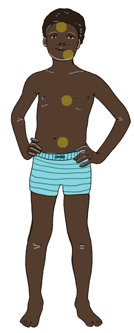 En la exploración física se aprecia una buena coloración de piel y mucosas (paciente de raza negra), con buen estado de hidratación, nutrición y perfusión. La auscultación cardiopulmonar es normal, y el abdomen blando, depresible, no doloroso, sin apreciar megalias ni masas. No se observan adenopatías locorregionales y la exploración neurológica no muestra hallazgos reseñables.