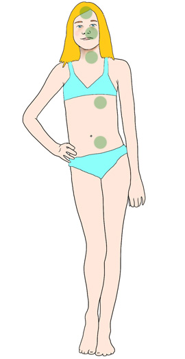 Regular estado general con palidez cutánea y mucosas secas. Buena perfusión periférica. Fenotipo normal. No exantemas ni petequias.