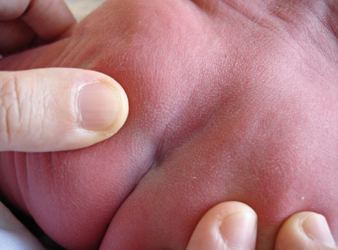 Es una de las anomalías más frecuentes en el recién nacido, con una prevalencia del 1-4%. Afecta a los dos sexos casi por igual. Se presenta en el repliegue interglúteo, como una depresión más o menos profunda. El trayecto sigue un curso descendente y se palpa fijado a la parte inferior del sacro o al coxis. La distancia de su entrada respecto al ano es menor de 2,5 cm. No presenta salida de líquido, material de descamación epitelial ni pelos.