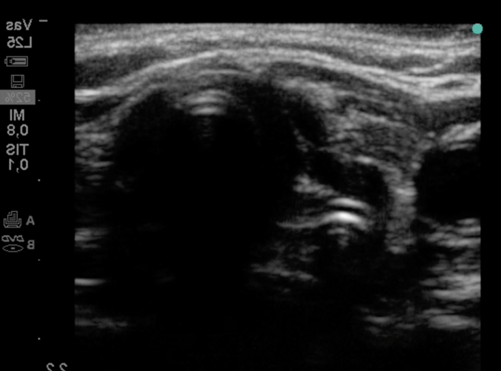 La siguiente imagen de ecografía corresponde a un control posintubación. ¿Ha sido exitosa esta intubación?
