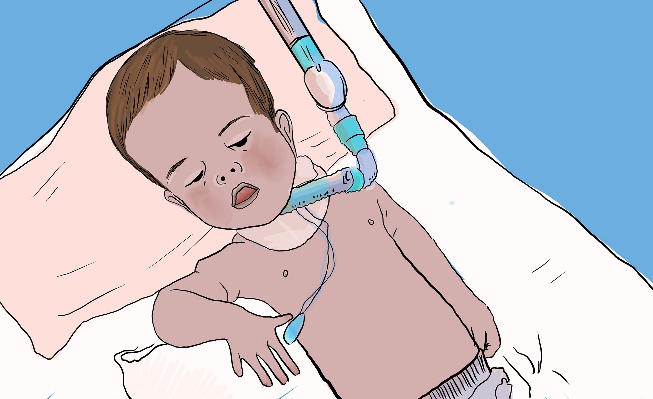 Niño 2 años afecto de acondroplasia que ingresa tras traumatismo por precipitación de su misma altura. Presenta una lesión medular incompleta sensitiva motora a nivel de C1-C2 que le condiciona una tetraparesia secundaria, parálisis de la cuerda vocal izquierda e insuficiencia respiratoria. Durante el ingreso se realiza traqueostomía insertando una cánula con balón. Precisa soporte respiratorio con ventilación mecánica invasiva de forma continua.