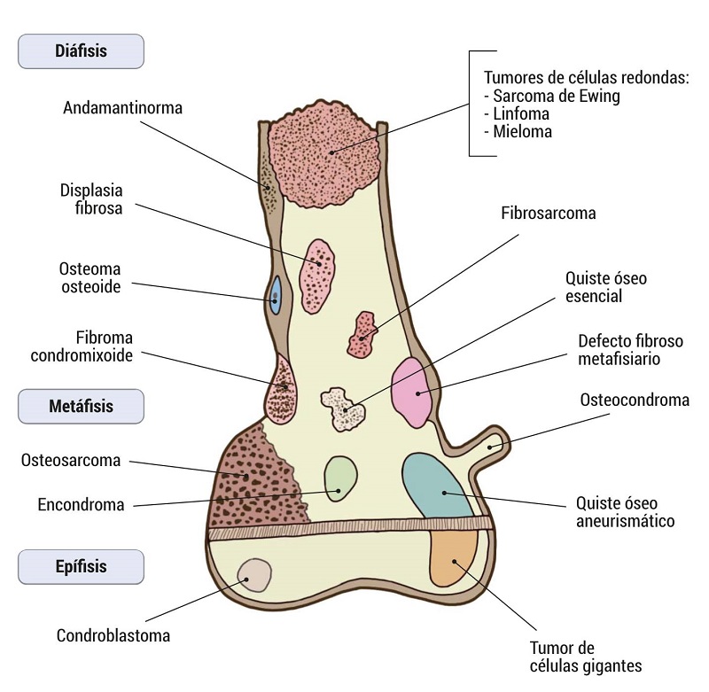 • Los tumores óseos benignos son mucho más frecuentes que los sarcomas óseos.