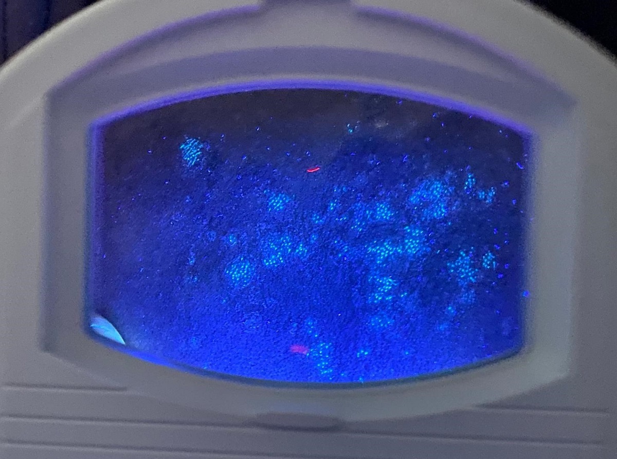 Fig. 3. Detalle de las lesiones a través de la lámpara de luz de Wood.