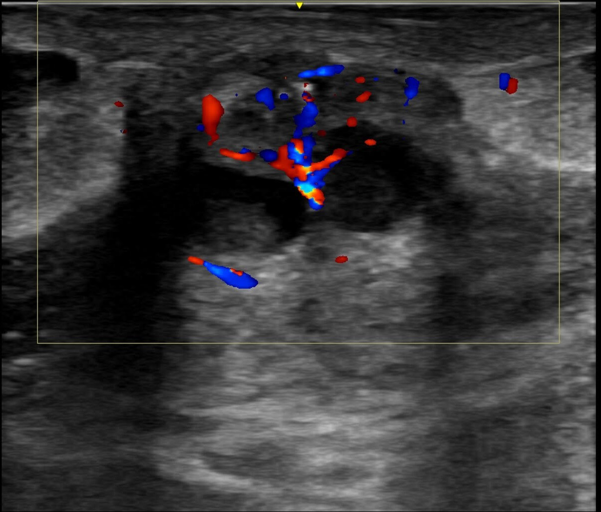 Figura 2. En el estudio Doppler se identifica un aumento de la vascularización de los tejidos circundantes.