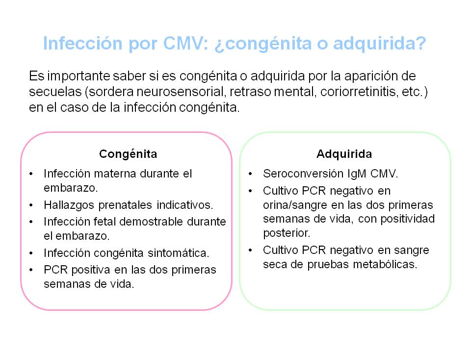 Antes de iniciar el tratamiento en nuestra paciente, es importante determinar si se trata de una infección por CMV congénita o adquirida.