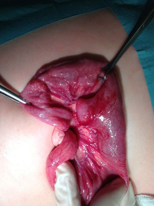 La sospecha diagnóstica se centra en tres entidades: divertículo de Meckel no captante, duplicidad intestinal y/o alteración vascular. Dado que las pruebas de imagen no son concluyentes se decide realizar una laparoscopia exploradora. Con ello en un único procedimiento anestésico se puede realizar un diagnóstico y tratamiento simultáneo. Viendo estas imágenes, ¿cuál es su diagnóstico definitivo? Dígalo en voz alta.