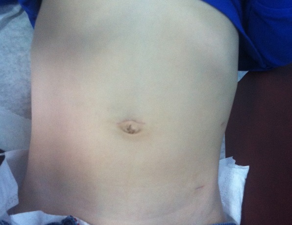 Diez días después del alta, precisa nuevo reingreso por cuadro de dolor abdominal, postración y dos vómitos, con analítica, radiografía y ecografía abdominal normales; precisó reposo digestivo y sueroterapia, mostrando buena evolución clínica. Fue dado de alta de nuevo, hasta la revisión en consulta de Cirugía externa un mes más tarde. El niño está asintomático, las cicatrices en buen estado y los resultados de la anatomía patológica confirman el diagnóstico de los hallazgos:
