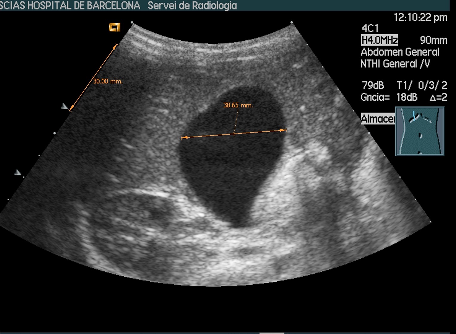 Se realiza ecosonograma abdominal donde se observa una vesícula biliar distendida, de 3,8 cm en el corte transversal, con contenido espeso en su interior, sin dilatación de vías biliares, ni imagen de litiasis.