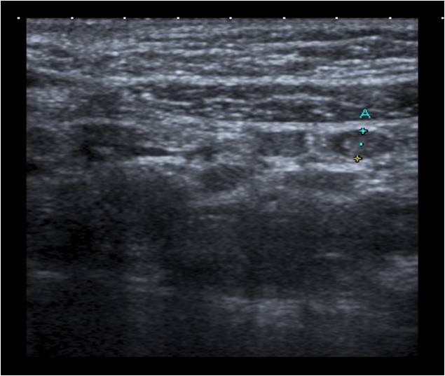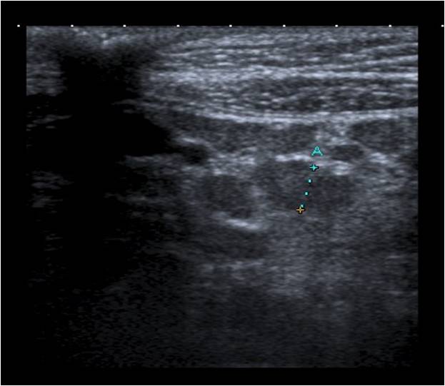 Se repite la ecografía abdominal: múltiples adenopatías de aspecto inespecífico en el área mesentérica con una discreta cantidad de líquido libre en fosa ilíaca derecha (FID).