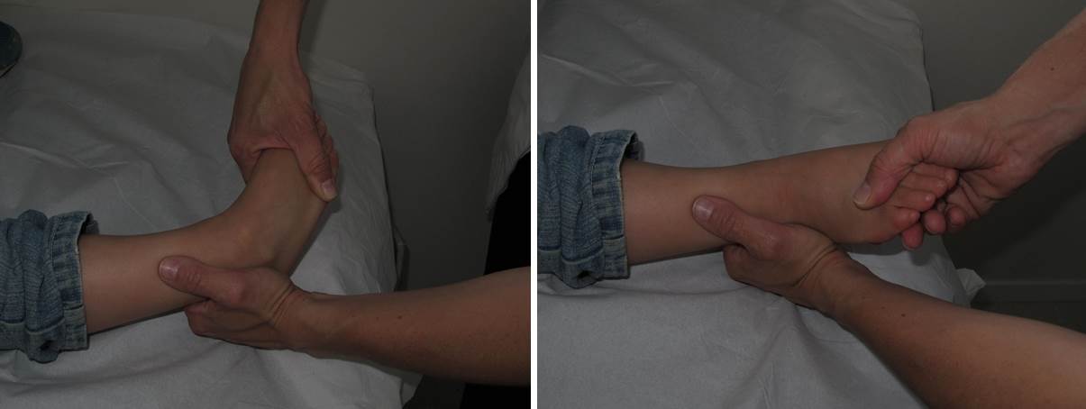 • Dolor a la palpación y a la movilización: fijando la articulación tibioastragalina y subastragalina con una mano, se coge con la otra mano el medio pie y se realizan movimientos de rotación, inversión y eversión, que desencadenan dolor en un paciente con una tarsitis.