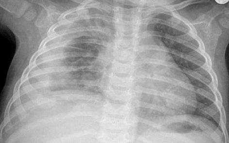 Podemos identificar una línea aérea rodeando la silueta cardiaca, así como el signo del diafragma continuo (presencia de aire entre el corazón y el diafragma). Puede asociar enfisema subcutáneo y/o neumotórax.