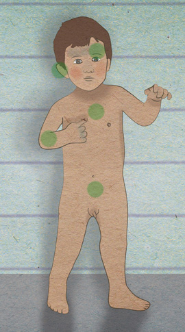 Actitud en pronación y flexión de codo en brazo derecho, con tendencia a la retropulsión. Destaca la mano en puño con flexión de la muñeca y el pulgar incluido; es capaz de abrirla espontáneamente pero evita manipular objetos. Fuerza 3/5, eleva brazo hasta 90° contra gravedad pero no contra resistencia.