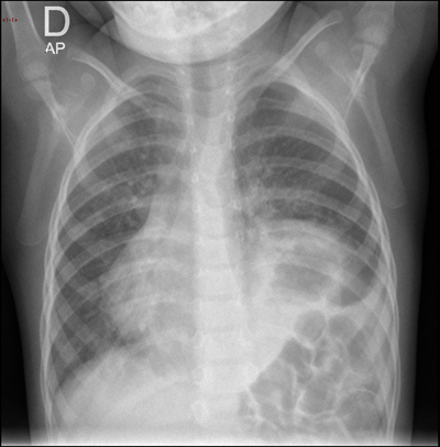 Tras el inicio de la antibioterapia, la paciente mejora rápidamente en menos de 48 horas. Usted, que regresa al hospital tras haber librado la guardia, consulta el informe del radiólogo en el ordenador.