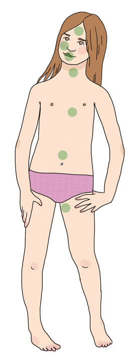 Peso: 17,7 kg (P15, -1,05 desviaciones estándar [DE]). Talla: 116 cm (P48, -0,05 DE). Índice de masa corporal (IMC): 13,15 kg/m2 (P10, -1,28 DE). SC: 0,76 m2. Estándares empleados: Carrascosa et al., 2010.