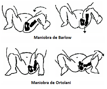 Debe descartarse, antes del alta, una displasia del desarrollo de la cadera, ya que un tratamiento precoz mejora el pronóstico. Se debe explorar mediante maniobra de Ortolani (comprobar la reducción de una cadera previamente luxada) y de Barlow (comprobar la luxabilidad de cadera reducida).